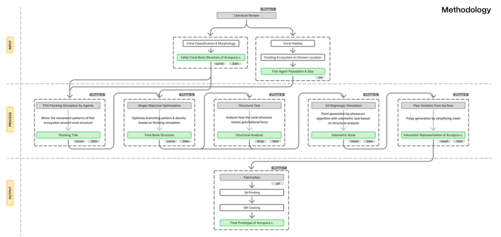 CROFOLOGY is a research-based design project that explores digital fabrication technologies for coral reef restoration. By combining marine ecology, computational design, and additive manufacturing, the project aims to develop bio-inspired artificial reef structures that support marine biodiversity and accelerate coral growth. Using coral typologies and morphologies as generative logic, CROFOLOGY creates modular reef units optimized for structural performance, ecological function, and oceanic integration. The goal is to produce reef components that not only mimic natural coral forms but also enhance their capacity for habitat creation, nutrient flow, and resilience against ocean currents.